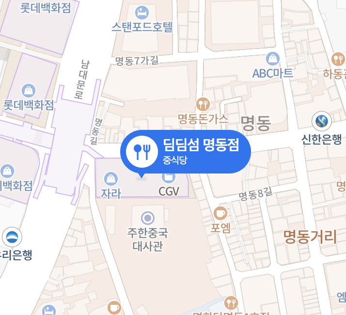 딤딤섬 명동점은 눈스퀘어 지하에 위치해 있고,