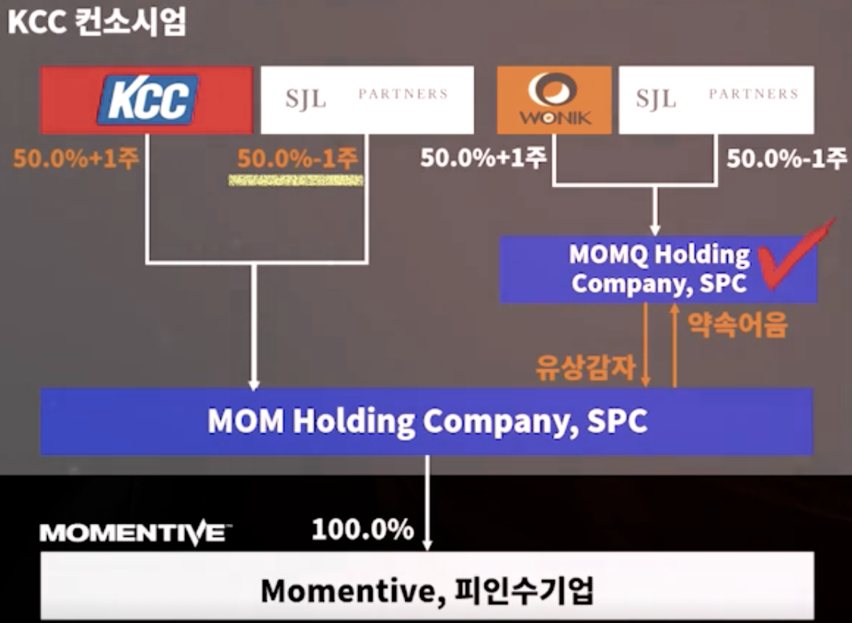 일단 MOM Holding Company라는 SPC설립하였는데, 재무적 투자자인 SJL의 비중이 50.5%로 가장 커 매각협상을 진두지휘하였고, 덕분에 합리적인 가격의 매각가와 인수구조 협상도 완료되었다.