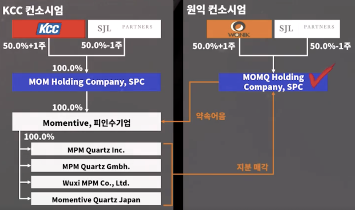 이에 KCC와 Wonik이 Momentive를 공동인수하였을 뿐 아니라 사업을 분리하여 나눠갖는것 까지 성공하였다.