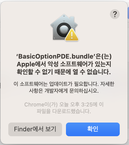 BasicOptionPDE.bundle은 Apple에서 악성 소프트웨어가 있는지 확인할 수 없기 때문에 열 수 없습니다.