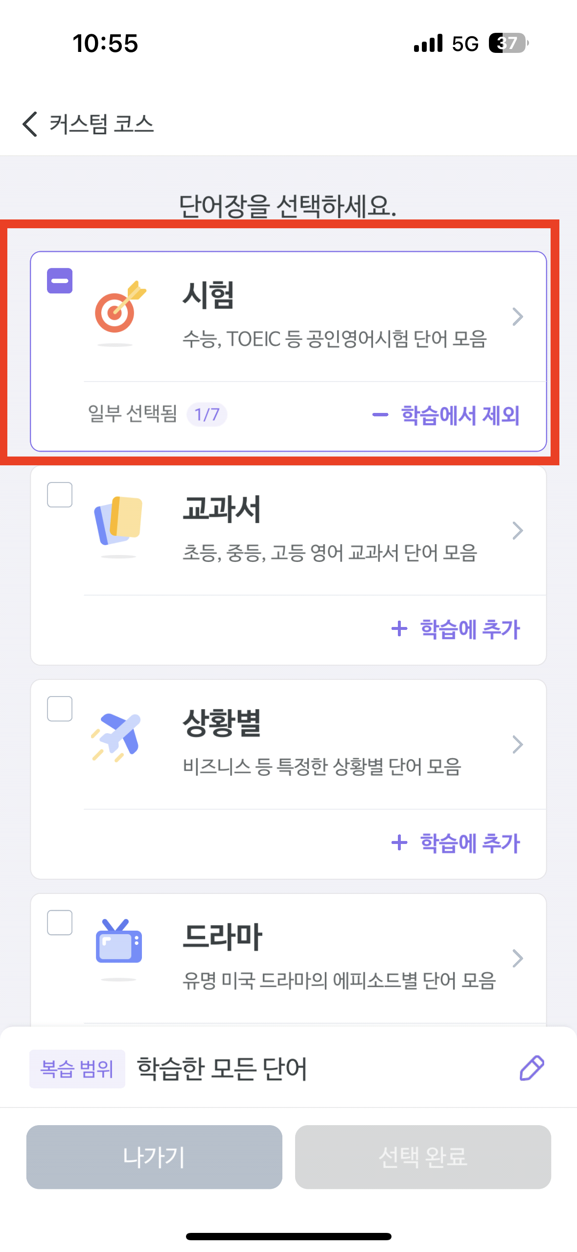 사실 처음에 단어장 설정을 안하고 학습하다보니 너무 쉬운 어휘가 많이 나왔는데요,
